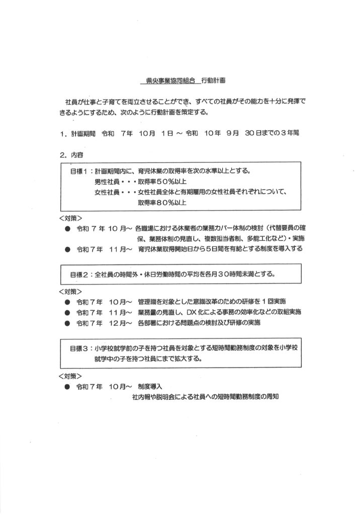 一般事業主行動計画を策定し公開しました。